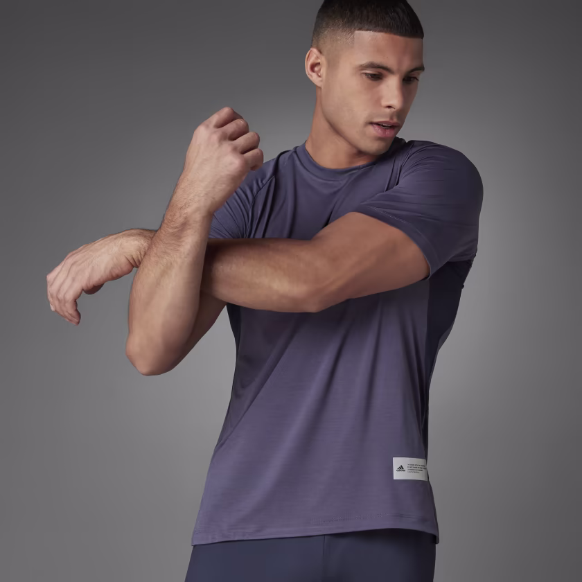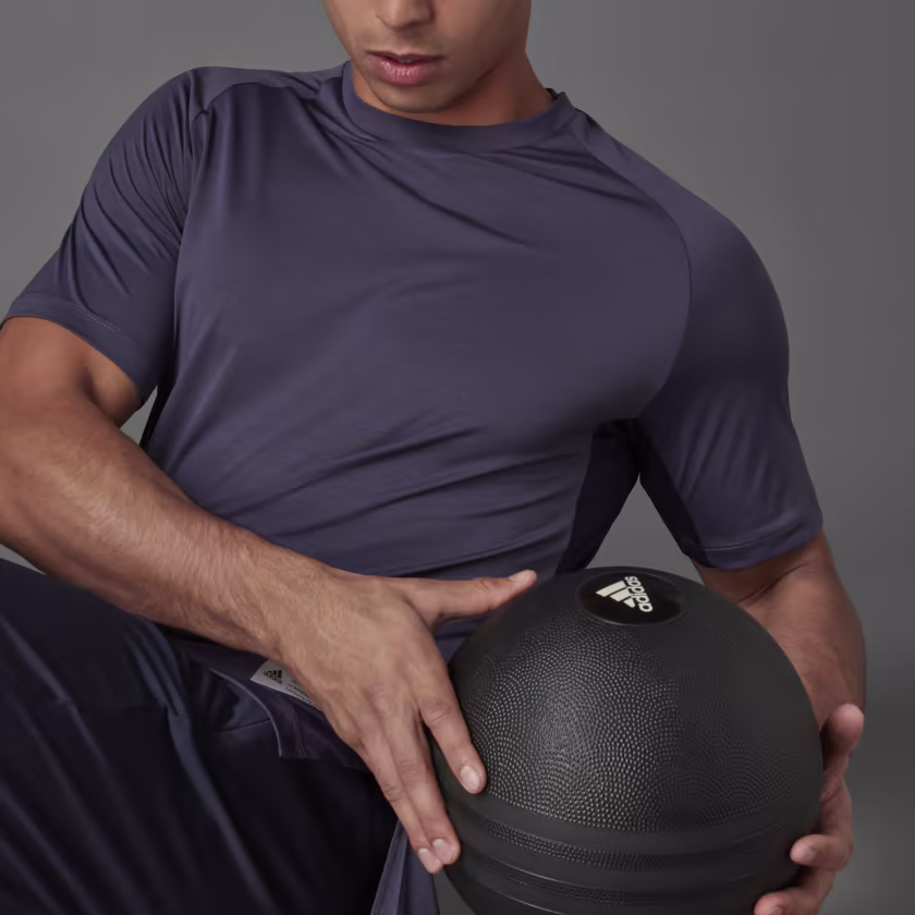 Unlock your better self. Work out any way you want when you're wearing this adidas t-shirt made for movement. You'll feel comfortable, thanks to AEROREADY, which manages moisture when things ramp up. The design gives you full range of motion, so go ahead and do another overhead lift.Made with 100% recycled materials, this product represents just one of our solutions to help end plastic waste.